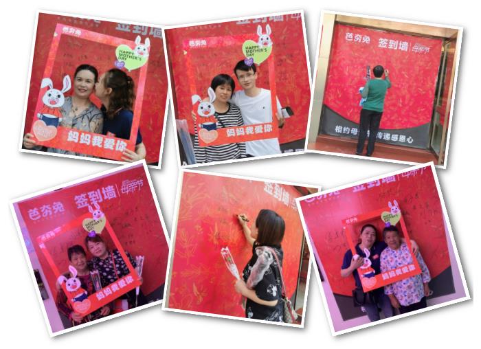 为了更好的传递活动“感恩”的主旨,公司在芭夯兔餐饮店门口设置了签字墙和打卡牌,员工和父母可以在上面签名并合照留念。这些彩蛋活动受到了员工及其父母的好评,大家兴致高昂,现场气氛非常热烈。看着照片中一张张动人的笑脸,相信本次母亲节活动的主题已经完美传递。