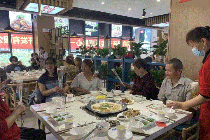 随着午餐时间临近,餐饮店服务人员开始忙碌。门店招牌汤锅,各种菜肴小吃,一份份美味陆续上桌,兼顾清淡和热辣不同口味,让在座的所有家人都能吃得尽兴,吃得满意!