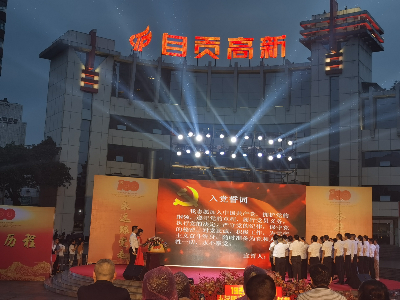 为庆祝中国共产党成立100周年,2021年6月26日,由自贡市委组织部、市委““两新””工委指导,自贡部分“两新”党组织联合主办的“永远跟党走,奋进新征程”主题活动在自贡市春华广场举行。300余名党员、入党积极分子、优秀员工参加了庆祝活动,自贡市委组织部副部长曾平出席并致词。